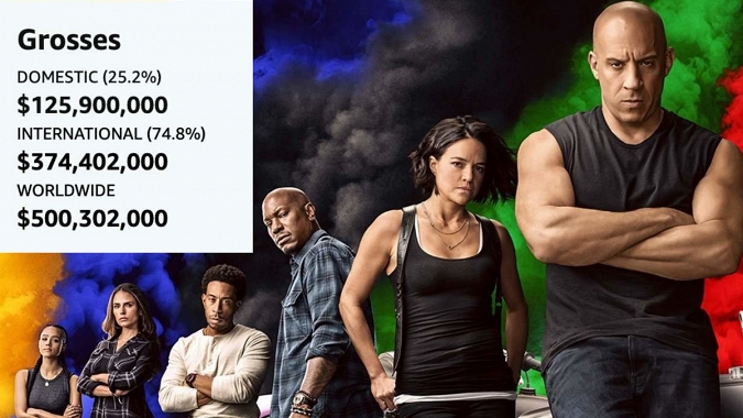 Hızlı ve Öfkeli 9", ABD dışında vizyona girdiği 50 civarı ülkede toplamda 374 milyon dolar kazandı. Bugün elde edeceği hasılatlarla birlikte dünya genelinde 500 milyon dolar hasılatı geride bırakacak olan "Hızlı ve Öfkeli 9", "Star Wars: Skywalker'ın Yükselişi" (Star Wars: The Rise of Skywalker) filminden bu yana global olarak bu baremi geçmeyi başaran ilk Hollywood filmi oldu.